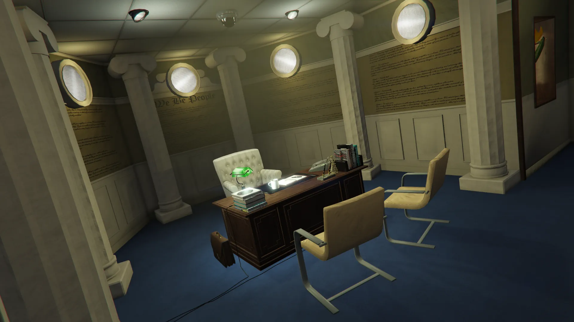 This product includes a waiting room with a secretary’s desk and a spacious office for the lawyer.